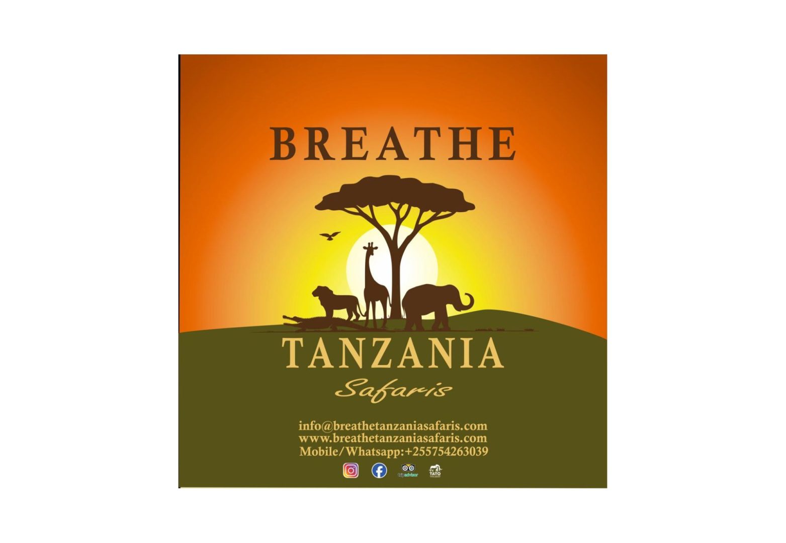 NAME: Breathe Tanzania Safaris P.O.BOX: 16600 ARUSHA, TANZANIA LOCATION: OLASITI KATI CONCTACT: +255 754 263 039 EMAIL: info@breathetanzaniasafaris.com WEBSITE: www.breathetanzaniasafaris.com